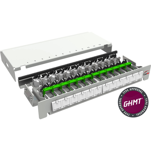 | Kurzbeschreibung | Verteilergehäuse RJ45-TL®, 12xRJ45 Buchse, 500 MHz, Cat. 6A, RAL 7035 |