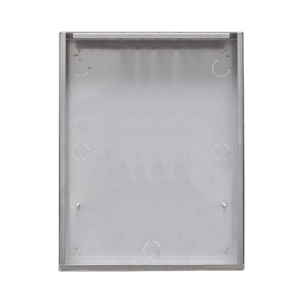 Aufputzgehäuse Serie Switch mit Regendach für die Frontplatten IX0324, IX0327, IX0330, IX0333. Abmessungen: 454x307,9x87,5mm.