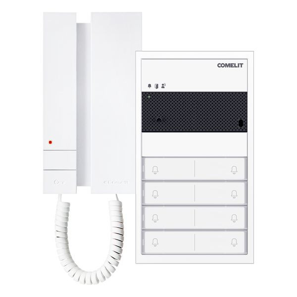 Paketlösung Ultra Audio inklusive Mini mit Hörer, SB2, AP, weiss. Es können maximal 4 Innenstationen Audio, pro Teilnehmer, installiert werden. Dieses Kit besteht aus: 1x Aufputzrahmen UT9172W, 1x Lautsprecher Audio UT2010W, 1x Tastenmodul UT9200, 1x Tastenabdeckung Blind UT9221MW, 4x Tastenabdeckung UT9212, 1x Netzgerät 1210, 8x Innenstation Audio Mini mit Hörer 2738W/A.