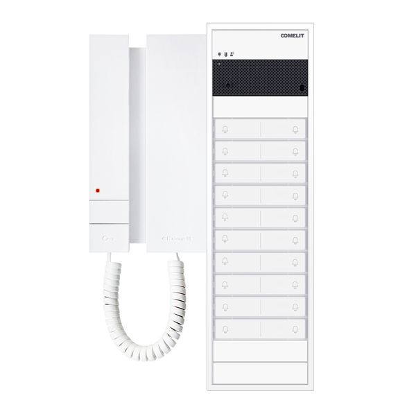 Paketlösung Ultra Audio inklusive Mini mit Hörer, SB2, AP, weiss. Es können maximal 4 Innenstationen Audio, pro Teilnehmer, installiert werden. Dieses Kit besteht aus: 1x Aufputzrahmen UT9174W, 1x Lautsprecher Audio UT2010W, 3x Tastenmodul UT9200, 3x Tastenabdeckung Blind UT9221MW, 10x Tastenabdeckung UT9212, 1x Netzgerät 1210, 20x Innenstation Audio Mini mit Hörer 2738W/A.