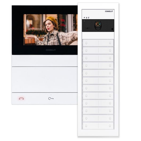 Paketlösung Ultra Video inklusive Logos LS8720, SB2, UP, weiss. Es können maximal 4 Innenstationen Video, pro Teilnehmer, installiert werden. Dieses Kit besteht aus: 1x UP-Gehäuse 3110/4A, 1x Unterputzrahmen UT9164W, 1x Lautsprecher Video UT2020W, 3x Tastenmodul UT9200, 1x Tastenabdeckung Blind UT9221MW, 12x Tastenabdeckung UT9212, 1x Netzgerät 1210A, 24x Innenstation Logos 4,3 Zoll Video LS8720.