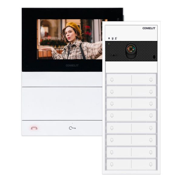 Paketlösung Ultra Video inklusive Logos LS8720, SB2, AP, weiss. Es können maximal 4 Innenstationen Video, pro Teilnehmer, installiert werden. Dieses Kit besteht aus: 1x Aufputzrahmen UT9173W, 1x Lautsprecher Video UT2020W, 2x Tastenmodul UT9200, 1x Tastenabdeckung Blind UT9221MW, 8x Tastenabdeckung UT9212, 1x Netzgerät 1210A, 16x Innenstation Logos 4,3 Zoll Video LS8720.
