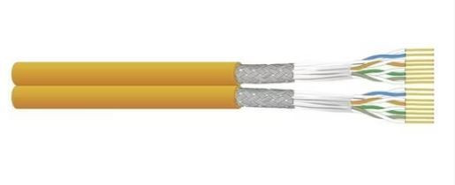 Das beschriebene Cat.7-Datenkabel zeichnet sich durch hervorragende elektrische und mechanische Eigenschaften aus und übertrifft die Anforderungen der Normen ISO/IEC 11801, IEC 61156-5, EN 50173-1 und EN 50288-4-1. Es bietet eine exzellente Schirmwirkung dank Paar- und Geflechtschirm und ist kompatibel mit allen gängigen Stecksystemen nach EN 50173 und ISO/IEC 11801. Die Aderfarben sind gemäß IEC 60189 und IEC 60708 in weiß/blau, weiß/orange, weiß/grün und weiß/braun ausgeführt. Das Kabel trägt eine Beschriftung mit DATWYLER, gefolgt von Kabeltyp, Zusatztext, Chargen-Nummer und Metrierung. Es ist für den Einsatz im Innenbereich konzipiert und kann bei Temperaturen von 0°C bis +50°C installiert sowie bei -20°C bis +60°C betrieben werden. Der Kabelmantel ist in orange gehalten und besteht aus FRNC/LS0H-Material (flammwidrig, nicht korrosiv und halogenarm), was zusätzliche Sicherheit im Brandfall bietet.