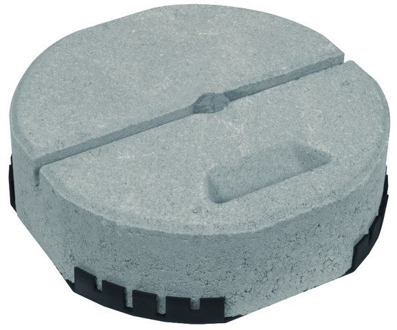 Betonsockel für Fangstangen, zum Schutz von kleineren Dachaufbauten auf Flachdächern und für das Errichten von Distanzhaltern z. B. für getrennte Ringleitungen oder freistehende Fangstangen im Dreibeinstativ (nur mit Gewicht 17 kg). Ausführung stapelbar und adaptierter Unterlegplatte, für Fangstangen Rd 16 mm, angefast, verjüngt oder DEHNiso-Distanzhalter Rd 16 mm