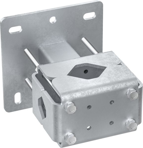 Mastbefestigung aus St/tZn für die Wandmontage. Zum Befestigen von Fangmasten Ø40-50 mm (hochkant) und Ø55-100 mm (quer) mittels Gewindestangen am zu schützenden Aufbau oder an der Wand. Mit Langlöcher zur einfacheren Montage und besseren Ausrichten versehen. Bis zu einer freien Länge von 5,5 m ist die Befestigung von Fangstangen und Stützrohren mit lediglich einem Halter möglich.