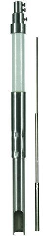 Stützrohr GFK/Al mit seitlichen Auslass für Stative, mit innenliegendem Endverschluss und PA-Federelement für die HVI power Leitung, zum getrennten (isolierten) Aufbau von Fangeinrichtungen mit Fangstange. Zum Einhalten des Trennungsabstandes zu elektrisch leitenden Teilen nach DIN EN 62305-3 (VDE 0185-305-3). Rohr D50 mm aus glasfaserverstärktem Kunststoff (GFK), UV-stabilisiert, Farbe lichtgrau, Materialfaktor km= 0,7. Ausführung einteilig, kombiniert mit Fangstange (D22 / 16 / 10 mm, Länge 2500 mm) aus Al.