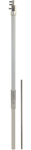Stützrohr GFK/Al mit innenliegendem Endverschluss und PA-Federelement für die HVI light plus Leitung, zum getrennten (isolierten) Aufbau von Fangeinrichtungen mit Fangspitze. Zum Einhalten des Trennungsabstandes zu elektrisch leitenden Teilen nach DIN EN 62305-3 (VDE 0185-305-3). Rohr D40 mm aus glasfaserverstärktem Kunststoff (GFK), UV-stabilisiert, Farbe lichtgrau, Materialfaktor km= 0,7. Ausführung einteilig, kombiniert mit Fangspitze (D10 mm, Länge 500 mm) aus NIRO.