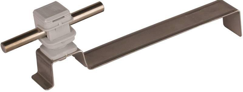 | Kurzbeschreibung | Dachleitungshalter DEHNsnap NIRO/K-grau H 16mm f. Rd 8mm m. gewink. Strebe 169mm |