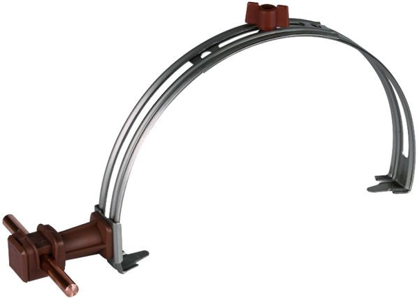 Dachleitungshalter stetig verstellbar mit Leitungshalter DEHNsnap, zum Befestigen von Fangleitungen auf dem Firstziegel z. B. bei Ziegeldächer. Mit loser Leitungsführung, seitlich verstellbar (oben Mitte bis unten). Ausführung aus wetterbeständigem Kunststoff, UV-stabilisiert und halogenfrei.