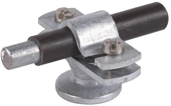 Leitungshalter mit Überleger und Abdeckbund, für das Verlegen von Rundleitern mit Kunststoffmatel. Mit geschlitztem Überleger und fester Leitungsführung. Ausführung mit Innengwinde.
