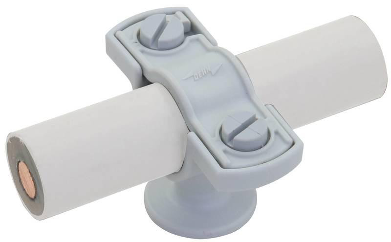 Leitungshalter für HVI Leitung (schwarz), HVI Leitung light oder CUI-Leitung, mit Zweischrauben-Überleger. Ausführung aus Kunststoff, für Wandmontage.