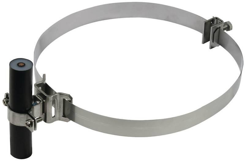 Leitungshalter aus NIRO für HVI power Leitung, zur Befestigung z. B. an Rohren oder Antennenmasten.