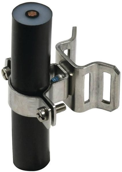 Leitungshalter aus NIRO für HVI power Leitung, zur Befestigung an Rohren oder Antennenmasten z. B. mit Bandrohrschelle (Art.-Nr. 106 323).