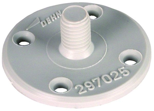 Befestigungsplatte zum Verlegen von Fangeinrichtungen auf Flachdächern und Wänden. Ausführung Kunststoff klein, mit Gewinde M8 für Leitungshalter z.B. DEHNsnap oder DEHNhold.