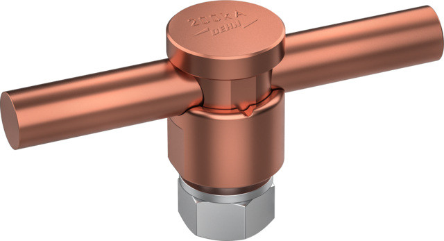 KS-Verbinder einteilig CU zum Anschluss von Rundleitern oder Leitungen z.B. an Flachprofile oder andere Teile der Blitzschutzanlage nach DIN EN 62561-1.