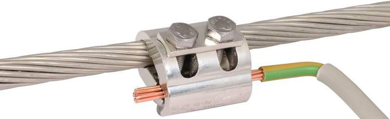 Parallelverbinder zur Erstellung eines Potentialausgleichssystems in explosionsfähiger Atmosphäre. Zündfunkenfrei geprüft für den Einsatz in explosionsgefährdeten Bereichen Ex-Zone 1 und 2 (Gase der Explosionsgruppe IIC) sowie Ex-Zone 21 und 22 (Stäube). Ausführung klein, für unterschiedliche Seildurchmesser, mit Ferderring sowie zwei Schrauben gegen Selbstlockern gesichert entsprechend DIN EN 62305-3 Beiblatt 2.