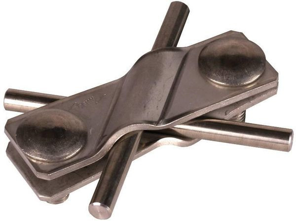 Schräg-Verbinder-Klemmen nach DIN EN 62561-1, für Kreuz- und T-Verbindungen von Rund- und Flachleitern. Ausführung mit Verdrehschutz der Schrauben M10.