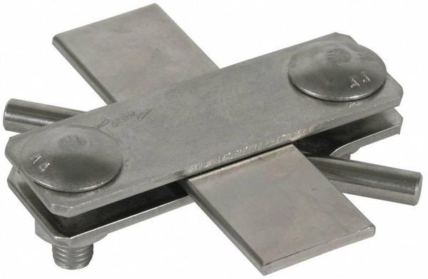 Schräg-Verbinder-Klemmen nach DIN EN 62561-1, für Kreuz-, Parallel- und T-Verbindungen von einen Rund- und einen Flachleitern. Ausführung mit Verdrehschutz der Schrauben M10.