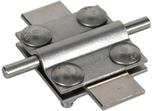 Kreuzstück nach DIN EN 62561-1, für ober- und unterirdische Verbindung von Rund- und Flachleitern. Ausführung ohne Zwischenplatte mit Schrauben M8.