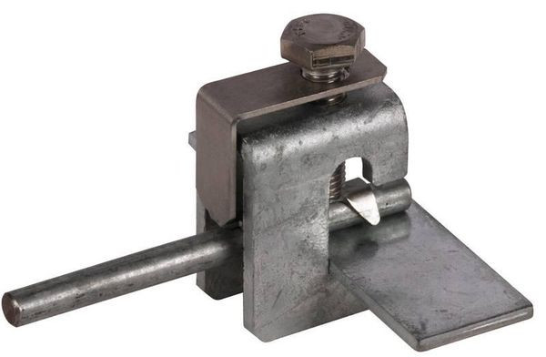 Anschlussklemme mit Druckstück nach DIN EN 62561-1, für den Anschluss an Stahlkonstruktionen und Stahlbleche mit Einschraubentechnik. Ausführung klein, mit Anschluss längs oder quer.