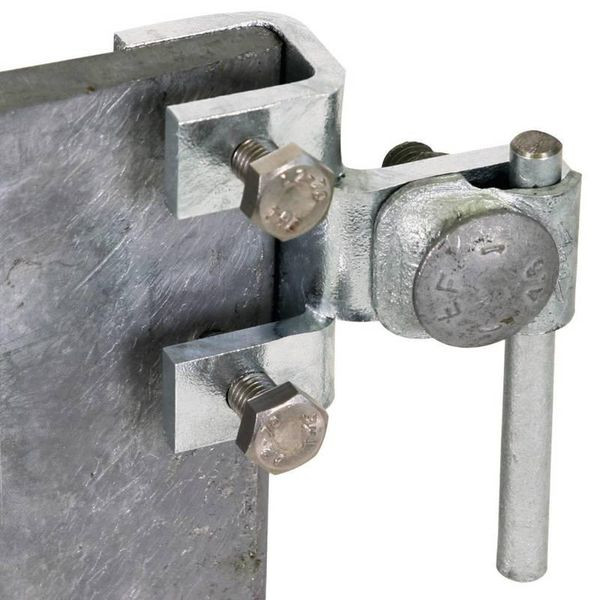 Anschlussklemme für Stahlträger nach DIN EN 62561-1, für den Anschluss an Stahlkonstruktionen. Ausführung senkrecht mit Klemmbock, Anschluss längs oder quer.
