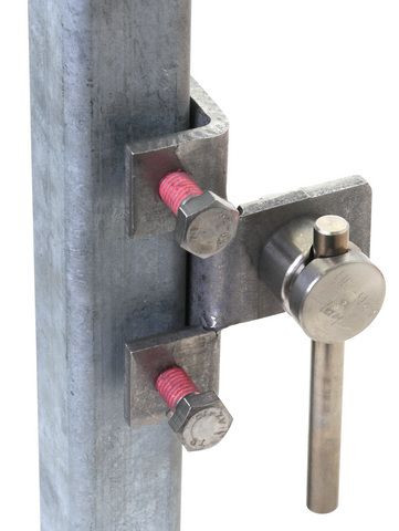 Anschlussklemme für Stahlträger nach DIN EN 62561-1, für den Anschluss an Stahlkonstruktionen. Ausführung senkrecht mit KS-Verbinder, Anschluss längs oder quer. Schrauben gegen Selbstlockern mittels Federring gesichert. Geeignet für den Einsatz in Ex-Bereich Zone 2/22.