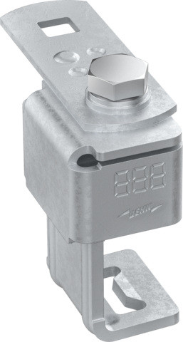 Anschlussklemme mit Klinge für Stahlträger nach DIN EN 62561-1, für den Anschluss an Stahlkonstruktionen. Ausführung mit Anschlusslasche.