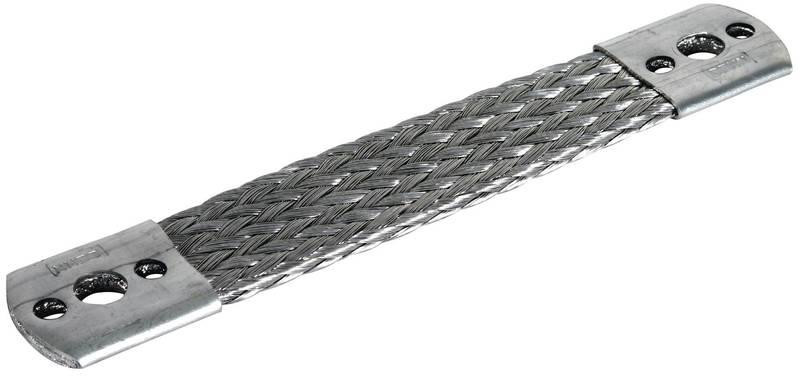 Überbrückungsband nach DIN EN 62561-1, zum Verbinden von Metallverkleidungen durch Nieten oder Schrauben. Ausführung kurz, für die Befestigung mit Bohrschrauben.