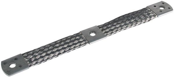Überbrückungsband nach DIN EN 62561-1, zum Verbinden von Metallverkleidungen (Nieten) oder als Dehnungsausgleichsstück für Runddrähte. Ausführung lang, auch für Kreuzungspunkte, Anschluss z. B. mit KS-Verbinder.