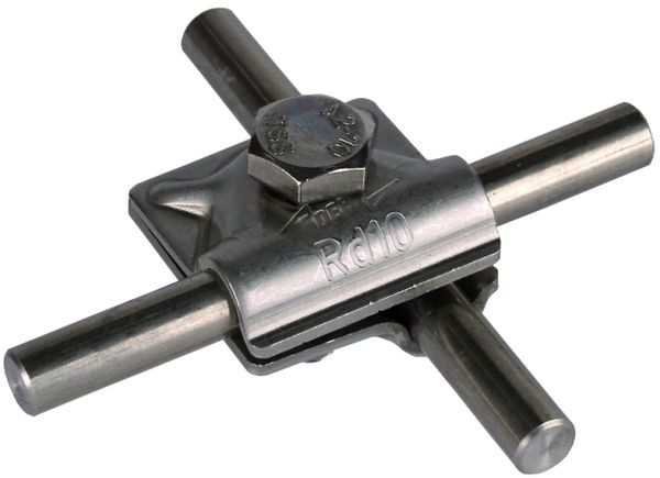 MehrzweckVerbindungs-Klemme nach DIN EN 62561-1, zur universellen Verwendung als Kreuz-, T- und Parallelklemme von Rundleitern. Ausführung zweiteilig mit Sechskantschraube und Gewinde im Unterteil.