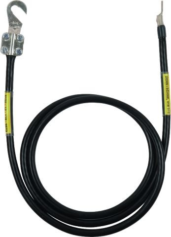 Erdungsleitung aus hochflexibler Kupferleitung, frostbeständig, UV-stabilisiert, Konfektionierung nach VG 96927-11. Ausführung mit Kabelschuh, 1x offen und Stiftkabelschuh Größe 16.
