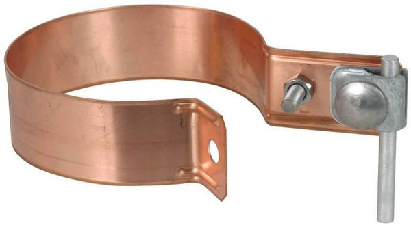 Rohrschelle nach DIN EN 62561-1, zum Anschluss von Regenfallrohren an den Blitzschutz-Potentialausgleich nach DIN EN 62305-3 (VDE 0185-305-3). Anschlussmöglichkeiten D11 mm für Rundleiter z. B. mit KS-Verbinder oder mit Klemmbock. Ausführung Zweimetall, für die Verbindung von Leitungen aus St mit Regenfallrohren aus Cu, mit Klemmbock St/tZn und Zwischenplatte (Cupal), für feste Rohrdurchmesser mit Schraube M8.