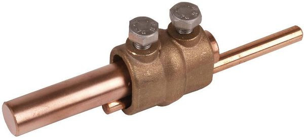 Trennmuffe nach DIN EN 62561-1, zum Verbinden der Ableitungen mit den Erdeinführungen. Ausführung offen, für Erdeinführungsstangen Rd 16 mm.