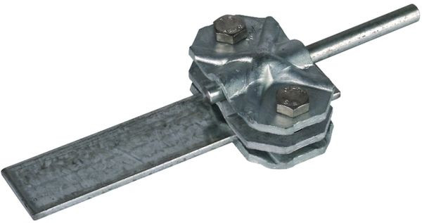 Verbindungs- / Trennklemme nach DIN EN 62561-1, zum Verbinden der Ableitung mit den Erdeinführung. Ausführung dreiteilig (mit Zwischenplatte), für Rund- und Flachleiter (Breite bis 40 mm).