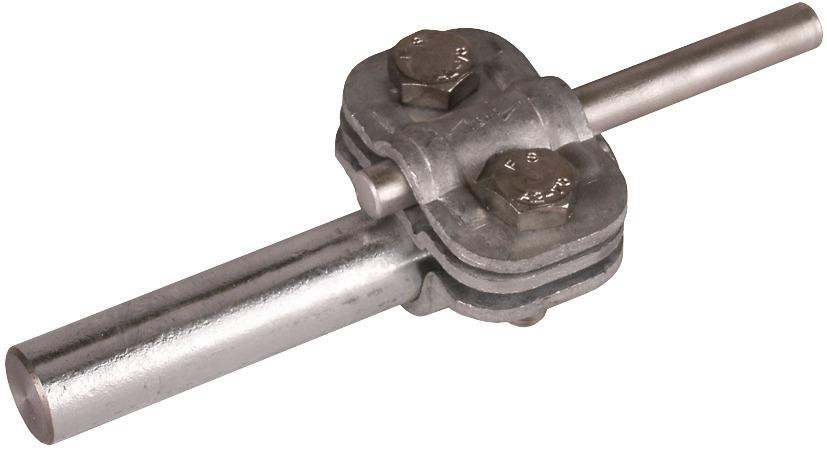 UNI-Trennklemme nach DIN EN 62561-1, zum Verbinden der Ableitung mit der Erdeinführung. Ausführung mit Zwischenplatte für Erdeinführungsstangen Rd 16 mm, schmale Bauform.