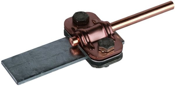UNI-Trennklemme nach DIN EN 62561-1, zum Verbinden der Ableitung mit der Erdeinführung. Ausführung Zweimetall, für Rundleiter Cu und Flachleiter St/tZn oder NIRO (V4A).