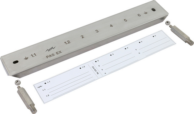 Abdeckung mit Abstandsbolzen und Bezeichnungsschild für PAS EX 1+5AP M10 V2A und PAS EX 7AP M10 V2A.