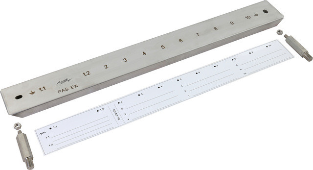 Abdeckung mit Abstandsbolzen und Bezeichnungsschild für PAS EX 1+9AP M10 V2A und PAS EX 11AP M10 V2A.