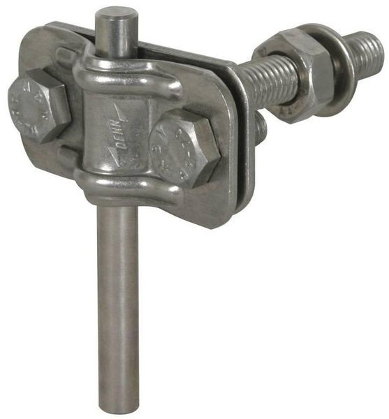 Anschlussklemmen mit Gewindebolzen zum Anschließen von Rund und Flachleitern an Erdungsfestpunkten mit Gewinde M10 / 12. Auch für die Montage auf der Rückseite des Erdungsfestpunktes ohne Anschlussachse z. B. für Flachband geeignet. Ausführung leicht, mit Anschlussgewinde M10.