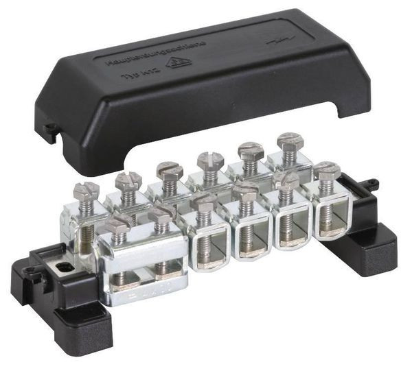 Potentialausgleichsschiene nach DIN EN 62561-1, für den Schutz- und Funktionspotentialausgleich nach DIN VDE 0100-410/540 (Haupterdungsschiene) und den Blitzschutz-Potentialausgleich nach DIN EN 62305-3 (VDE 0185-305-3). Ausführung UV-stabilisiert, geprüft nach DIN VDE 0618-1, Aufsteckklemmen St/gal Zn, Befestigungsböcke und Abdeckhaube aus Kunststoff, schwarz (halogenfrei), Abdeckung plombierbar und beschriftbar.