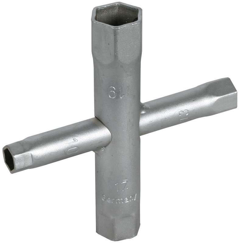 Kreuzsteckschlüssel zum universellen Einsatz bei der Montage von Blitzschutzanlagen. Mit vier Schlüsselweiten (SW 10, 13, 17 und 19).