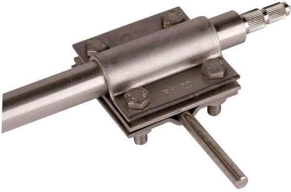 Anschlussklemme nach DIN EN 62561-1, zum Kreuz- und Parallelanschluss von Rundleitern, Flachbändern oder Seilen an Tiefenerdern. Ausführung für Tiefenerder Ø20-30 mm, mit vier Schrauben M8.