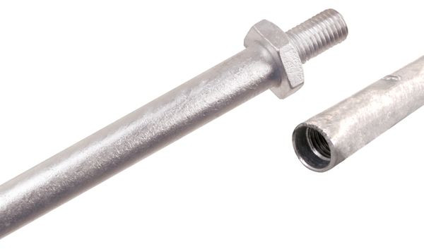 Tiefenerder schraubbar St/tZn Stablänge 500mm Ø20 mm mit Gewinde M16 zum Errichten von gebohrten Erdungsanlagen z.B. bei felsigem Boden oder für Pipeline Anwendungen. Erder und Verbindungsgewinde M16 entsprechend den Anforderung nach DIN EN 62561-2. Mit Vorrichtung zur Aufhängung über Bohrloch.