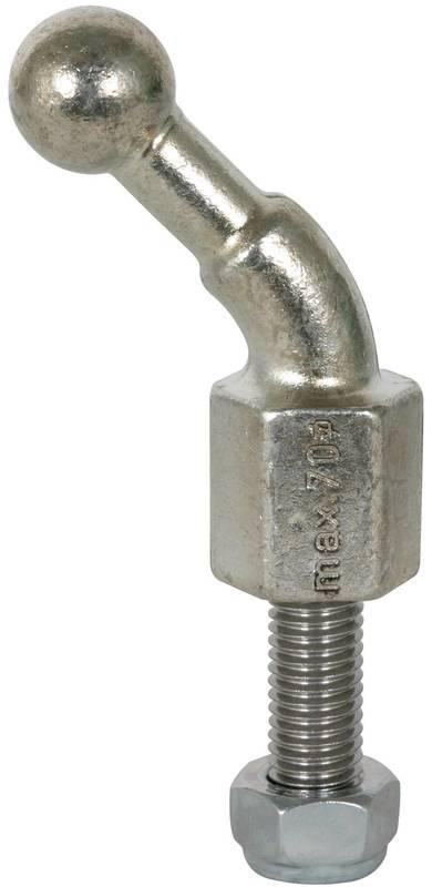 | Kurzbeschreibung | Kugelfestpunkt D 20mm 45o abgewinkelt m. Gewindebolzen u. Mutter M12x35mm |