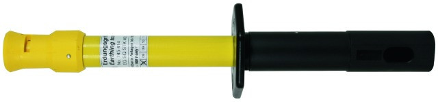 Erdungsgriff, Ausführung Spindel mit Querstift. Arbeitskopf mit Bajonettkupplung und Druckfeder für sicheren Halt der freigeführten Erdungs- und Kurzschließvorrichtung zum Erden und Kurzschließen an NS-Anlagen nach DIN VDE 0105-100 (EN 50110).