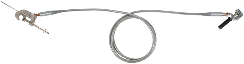 Einpolige Erdungs- und Kurzschließvorrichtung nach DIN VDE 0683-100 (EN/IEC 61230) für Speiseleitungen und Bahnstromleitungen elektrischer Bahnen, 4 m lang, mit Leiterklemme und Universalklemmen mit Handgriff.