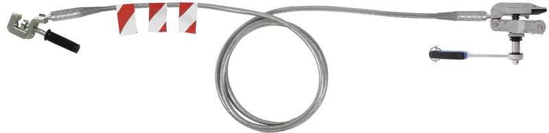 Einpolige Erdungs- und Kurzschließvorrichtung nach DIN VDE 0683-100 (EN/IEC 61230) für Masten oder Baumaschinen, Hebezeuge und Bahndienstwagen zum Erden an der Schiene; 8,5 m lang, mit Universalklemme, Handgriff aus Kunststoff und Schienenanschlussklemme (Ratsche) bestückt.