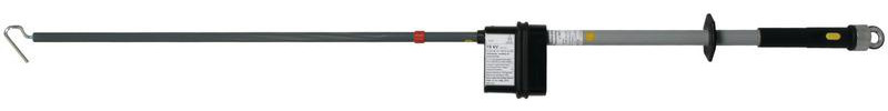 Kapazitiver Spannungsprüfer PHE als zusammengehörige Bauart nach DIN VDE 0682-411 (EN/IEC 61243-1) zum Feststellen der Spannungsfreiheit an der Arbeitsstelle nach DIN VDE 0105-100 (EN 50110-1) speziell an Bahnenergieanlagen 15 kV / 16,7 Hz. Inklusive Hakenelektrode und steckbarem Abschlussteil mit Ringöse zum einfachen und sicherem Mastaufstieg. Auch bei Niederschlägen verwendbar.