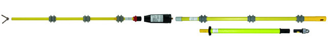 Kapazitiver Spannungsprüferset PHE III als zusammengehörige Bauart nach DIN VDE 0682-411 (EN/IEC 61243-1) zum allpoligen Feststellen der Spannungsfreiheit an der Arbeitsstelle nach DIN VDE 0105-100 (EN 50110-1) in elektrischen Anlagen. Kategorie "S" für Schaltanlagen und Freileitungen. Auch bei Niederschlägen verwendbar. Mit optischer und akustischer Anzeige und Eigenprüfvorrichtung.