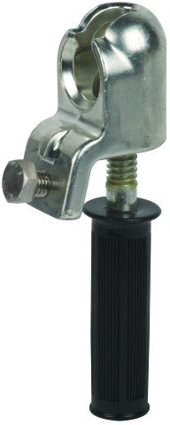 Kugelkopfhaube starr mit Handgriff aus Kunststoff als erdseitiges Anschlusselement nach DIN VDE 0683-100 (EN/IEC 61230) für Kugelfestpunkte zur erdseitigen Bestückung von Erdungs- und Kurzschließseilen. Mit Verdrehungsschutz Ausführung PK 1.